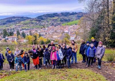 L’école Saint Charles de Cours a présentée son épouvantail en présence du Président Eric Pharabet et de bénévoles du Sentier Botanique.